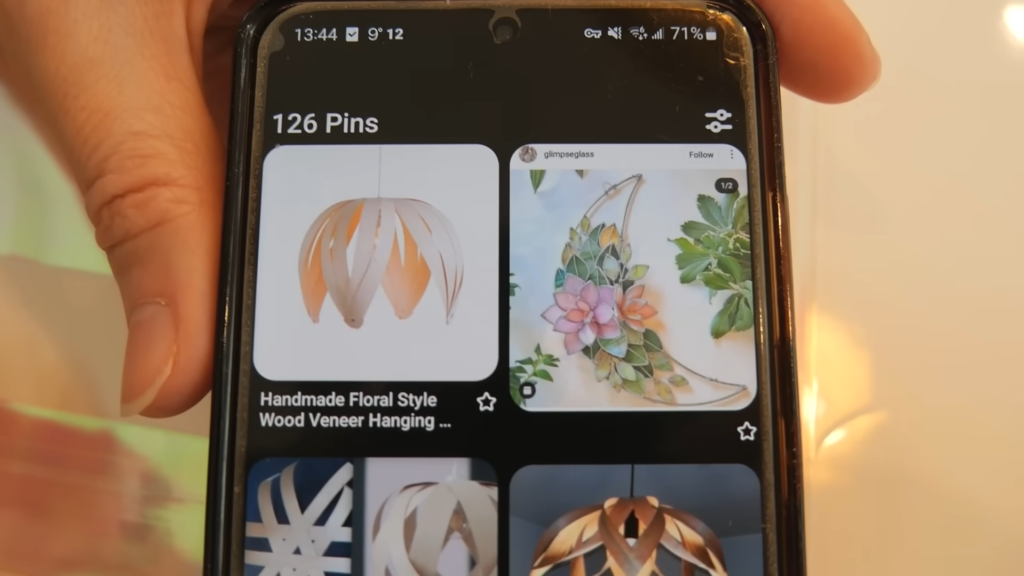 Once the design is ready, Rachel transfers it onto the plastic and holographic sheets. She carefully cuts out each piece and adds small slits so the petals can bend slightly. This helps create depth and gives the lamp a more natural look. However, she quickly realizes that the material is harder to work with than expected. It takes patience and a bit of trial and error to get the shapes right. If you’re trying this yourself, softer materials like paper or fabric can be a good alternative.