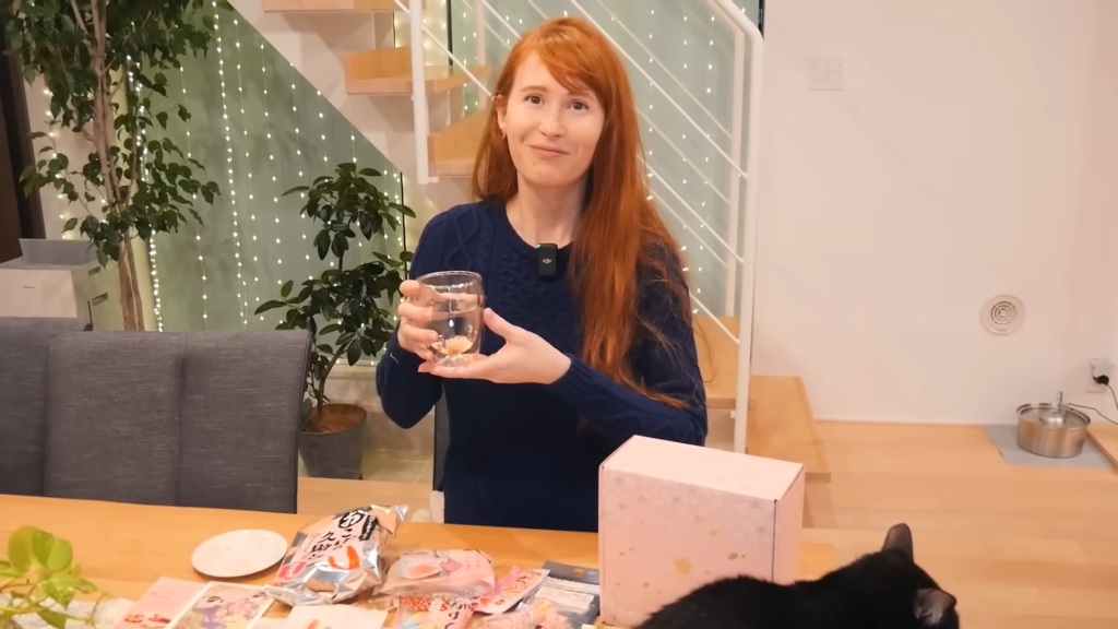 While working on the project, Rachel and Jun take a break and enjoy snacks from Sakuraco. Sakuraco is a monthly Japanese snack subscription box that features traditional and seasonal treats. This month’s theme is sakura, with items like sakura tea, dorayaki, and sweets made with cherry blossom flavors. Each box also includes a booklet that explains the snacks and their background. It’s a simple and fun way to enjoy Japanese culture at home while taking a break.