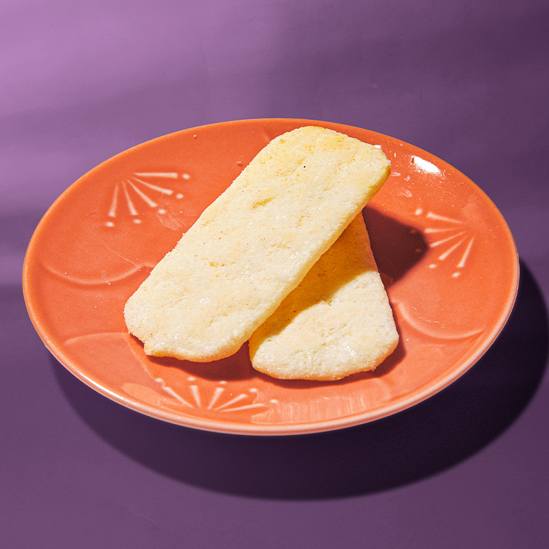 Crafted with domestic glutinous rice, these bite-sized arare have been coated in a rich cheese flavor. Each piece offers a satisfying crunch with the indulgent taste of cheese.